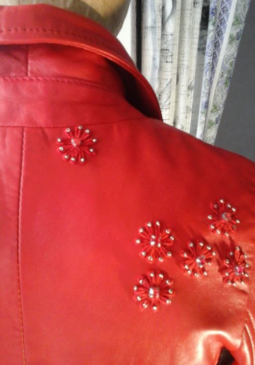 Если бы! Молодая мама двух детей,моя племянница хотела более рокерскую куртку...(я сломала шесть бисерных игл,вышивая металлическим бисером и стразами Сваровски кожу)...просто жалко было сестру и её кошку...