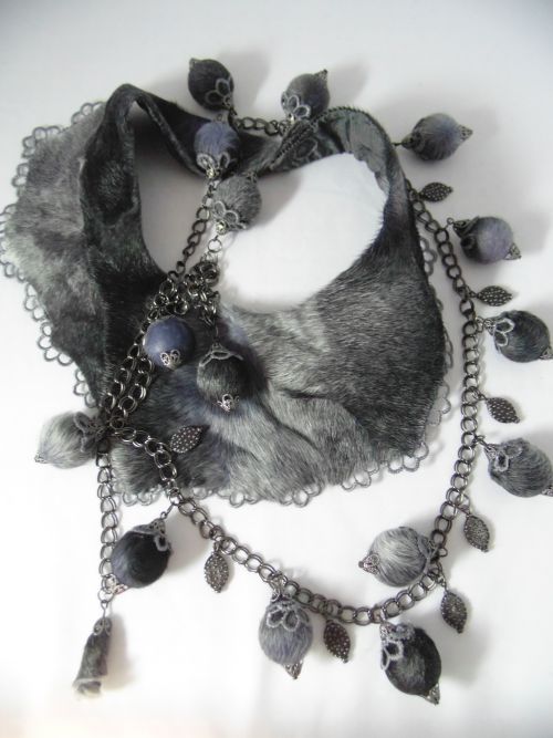Мех и бисер:( брошка+ подвеска+ шарф)