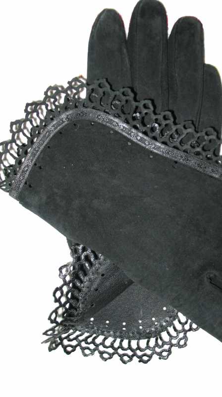 Мериносовое пальто сначала было вышито кожаными нитками и носилось с кожаной перфорированой косынкой: