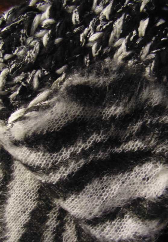 Нет, накидка- это не прямоугольники!...По ходу- четыре треугольника поперечного вязания, причём каждый начинается с бросовой нити, так легче и вязание( с одной стороны всё время убавки, с другой-ровный край) и отделка- стирка,сушка и сборка....