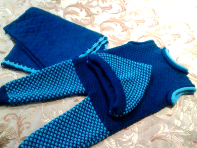 Вот такой комплектик связался-плед,ползунки и шапулька.Двухцветный пресс.