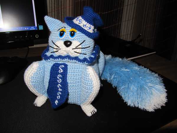 Девочки, выставляю на ваше обозрение работу, связанную для меня, на подарок моей дочери. Кот-шкатулка!!! Вязала Женя, дочка нашей Лены-модератора. Работа шикарная, мой сын ошарашен. Сказал: "Ничего себе, это что, руками связано, круто!" Вообщем, не удивительно, что у мамы-рукодельницы выросла доця- рукодельница :good: :claping: Я просто сражена такой тонкой и идеально работой. Всё подобрано со вкусом и и в тему. Очень кропотливая и замечательная работа. Спасибо Женечке за такой труд и маме за талантливую дочь. :oops: :flowers: