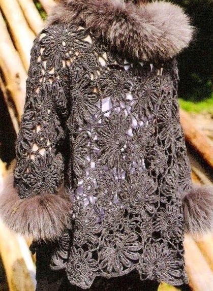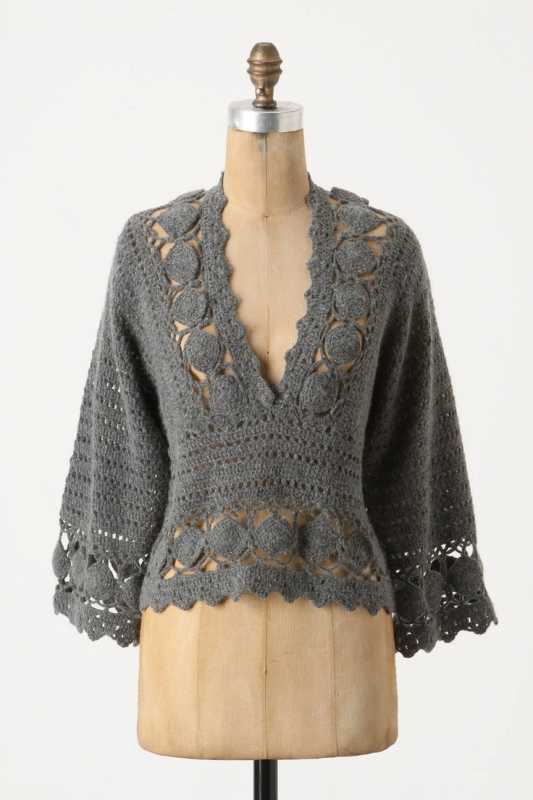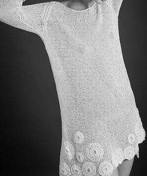 На готовый шёлковый топ нашивается "вприкреп" кружево, связанное крючком из кид-мохера.