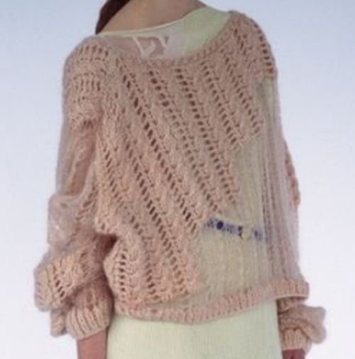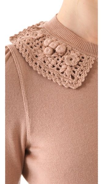 Фото № 2: Аппликация цветков, связанных крючком, или машинного кружева на тонкий джемпер или сетку( главное- тон-в-тон)