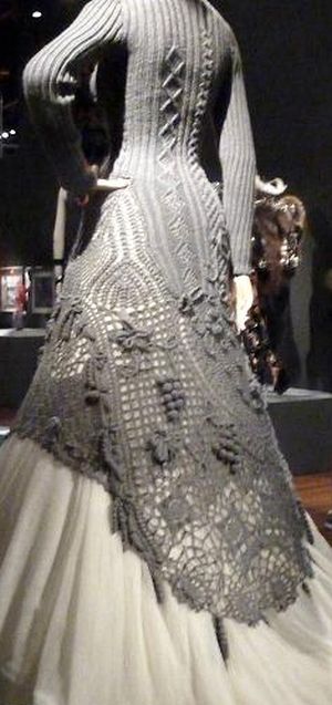Это эффектная и в то же время простая технология вязания: спицы+ крючок+ вырезанные из гипюра цветы- главное почаще прикладывать к выкройке!