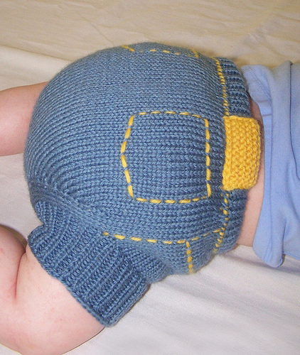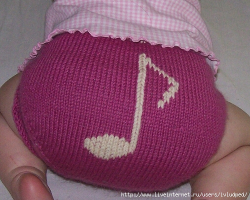 Сначала на малыша надевают хлопковый подгузники, а поверх вязаный напопник.