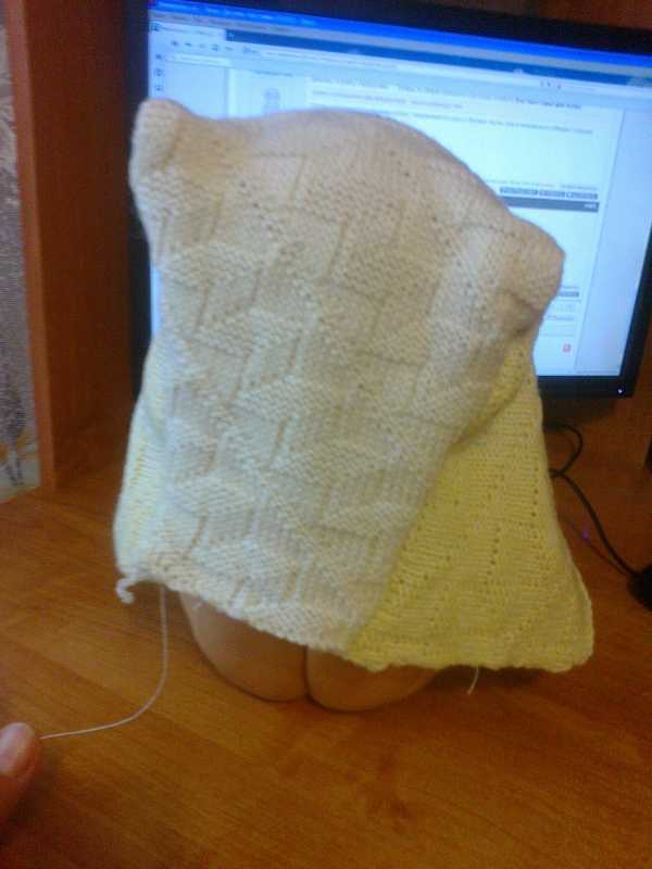 Сшила, но получается лишними уголки ( напрашивается срез) в боковых частях. Или я неправильно собираю? Собираю так:начало вязания частей - к лицу.