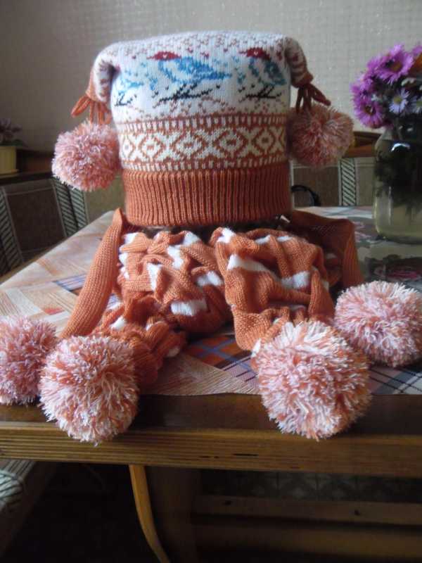 О, какая прелесть! Особенно шапочка с шарфиком! Умоляю, расскажите как вязать! пожааалуйста!