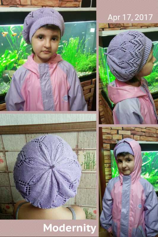 Беретик,для дочи на Весну.Испанский хлопок ,3 нити,ПЛ 8,на 150 игл.