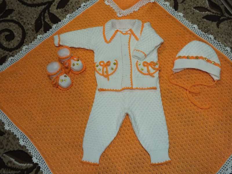 Связала к комплекту на выписку костюмчик шапочку и пинетки