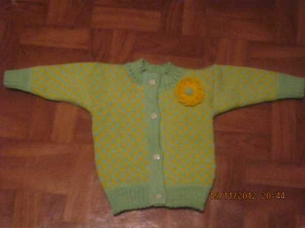 Живем "далеко", через трамвайные пути перейти. :wink: К себе не звала сначала - девчушка родилась всего 780 грамм, когда выписали, была очень слабенькой. Попросила кофточку связать, ну и с концами. Она ее даже не видела. Ну а сейчас уж поздно. Я девчушку когда увидела, она уж мала была. Я же вязала совсем на маленькую.