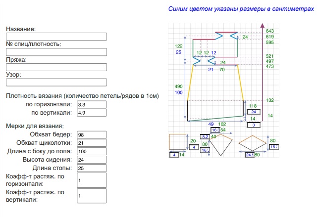 Выкройка колготок детская 130d