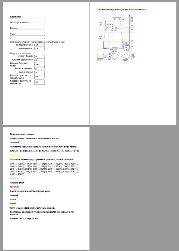 Компактная печать расчетов выкроек