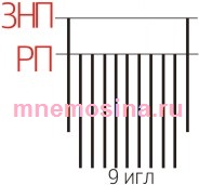 Раппорт узора 11 игл: 1 игла в ЗНП (заднем нерабочем положении), 9 игл в РП (рабочем положении), 1 игла в ЗНП.