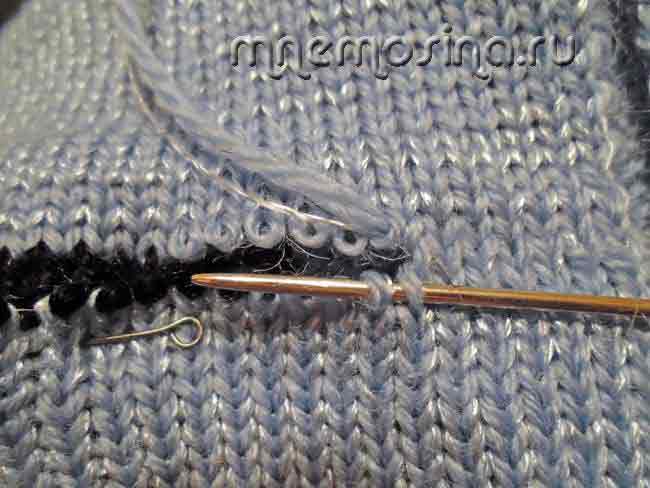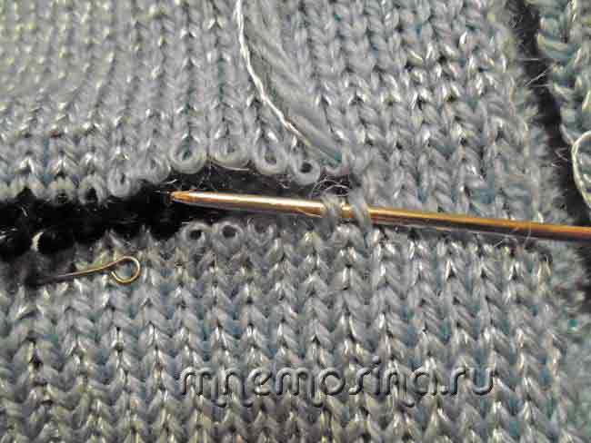 Продолжаем сшивать, пока все открытые петли вязания не будут сшиты.