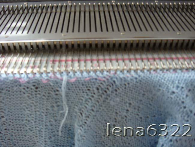 Рычаги на каретках настраиваем для кругового вязания. Начинаем вязание. Провязываем 14 рядов по счетчику, но последние 2 ряда нужно провязать на более рыхлой плотности (для примера: вязали на плотности 3, вяжем на 4 или 5. ) Чтобы кеттлевочный мешок красиво смотрелся, надо плавно уменьшать плотность до рабочей, провязали 2 круговых ряда - регулятор плотности подкрутили на одну точечку и т.д.)