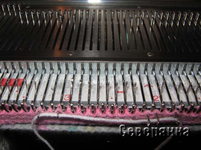 Вяжем до места размещения рисунка. Настраиваем каретку на частичное вязание. Иглы в ПНП не вяжут.