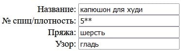 Узор. Необязательное поле. Можно записать название узора, которым планируется вязать.